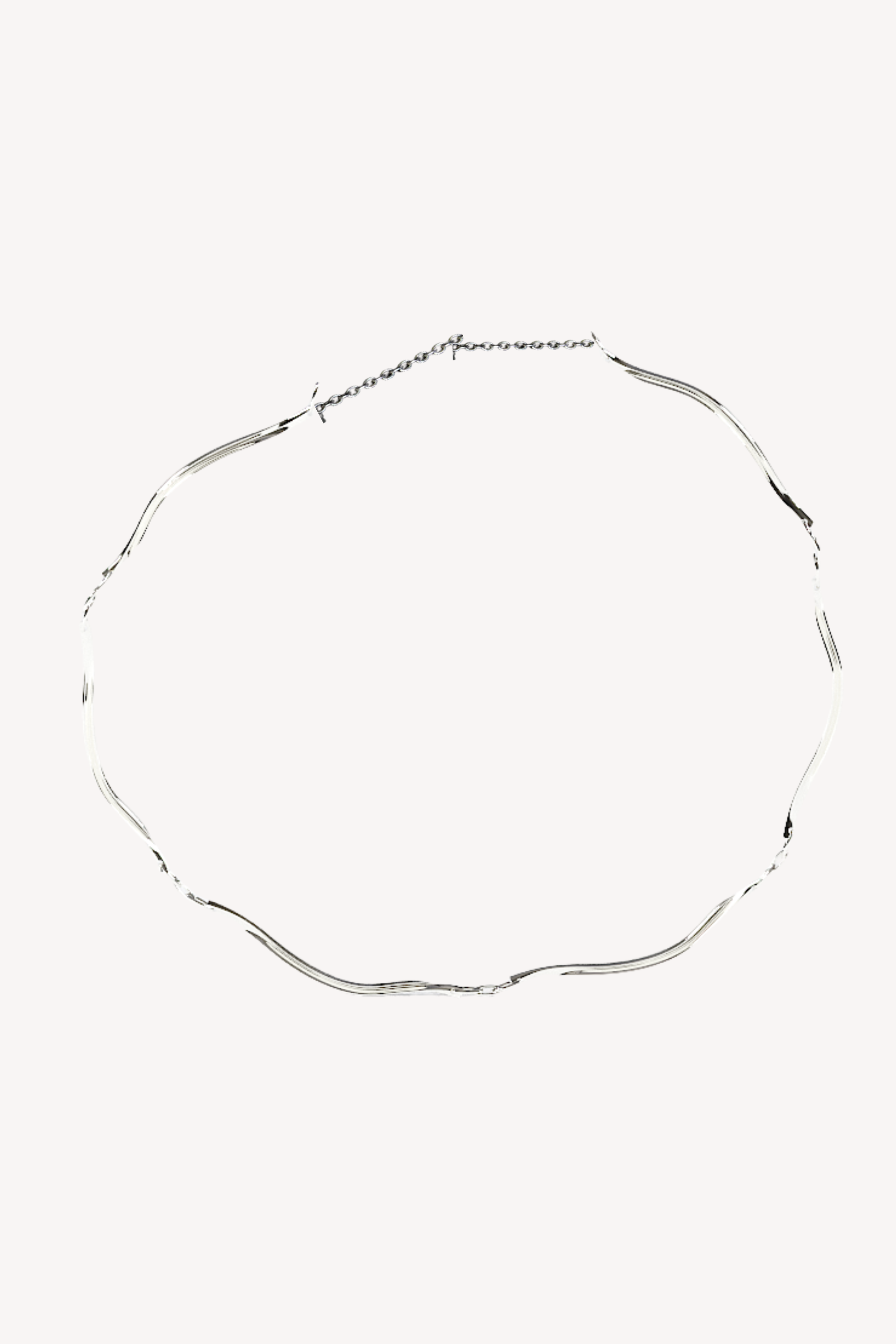 A sculptural centerpiece for the modern ritual. Composed of four hand-carved, fluid links in high-polish Sterling Silver, this choker is designed to mimic the organic rhythms of movement. Connected by delicate jump rings with an adjustable silver chain at the back, it is a versatile statement—perfect for elevating an evening look or adding an artistic edge to your daily landscape.
