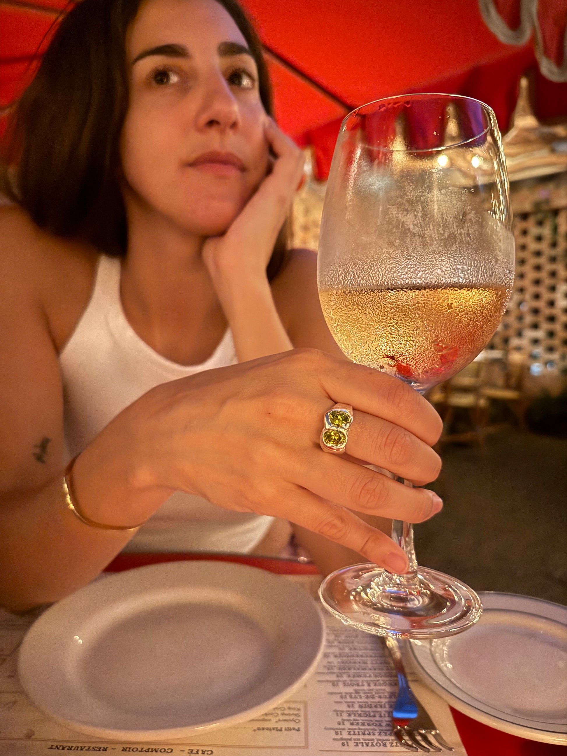 Our Classic Freya Ring made made in Sterling Silver with two green Zirconia stones.