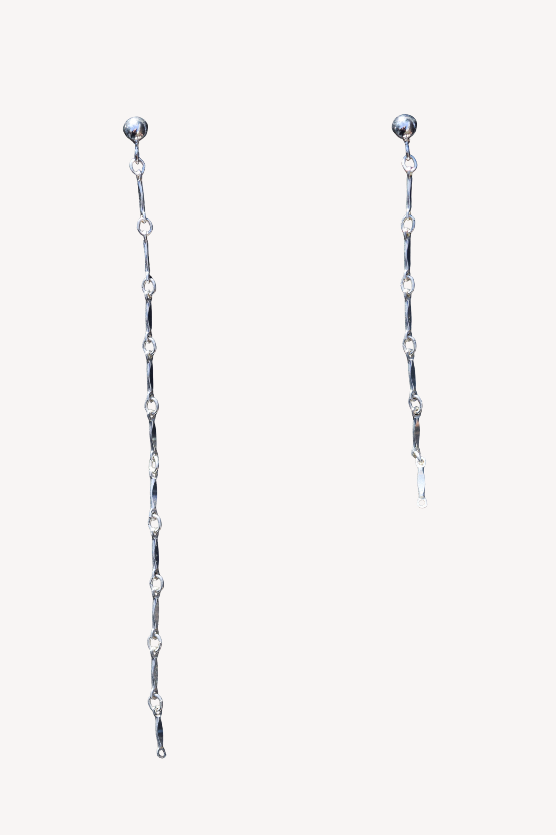 Assymetric earrings, one earring measures 4 inches (as pictured), the other 2 inches.