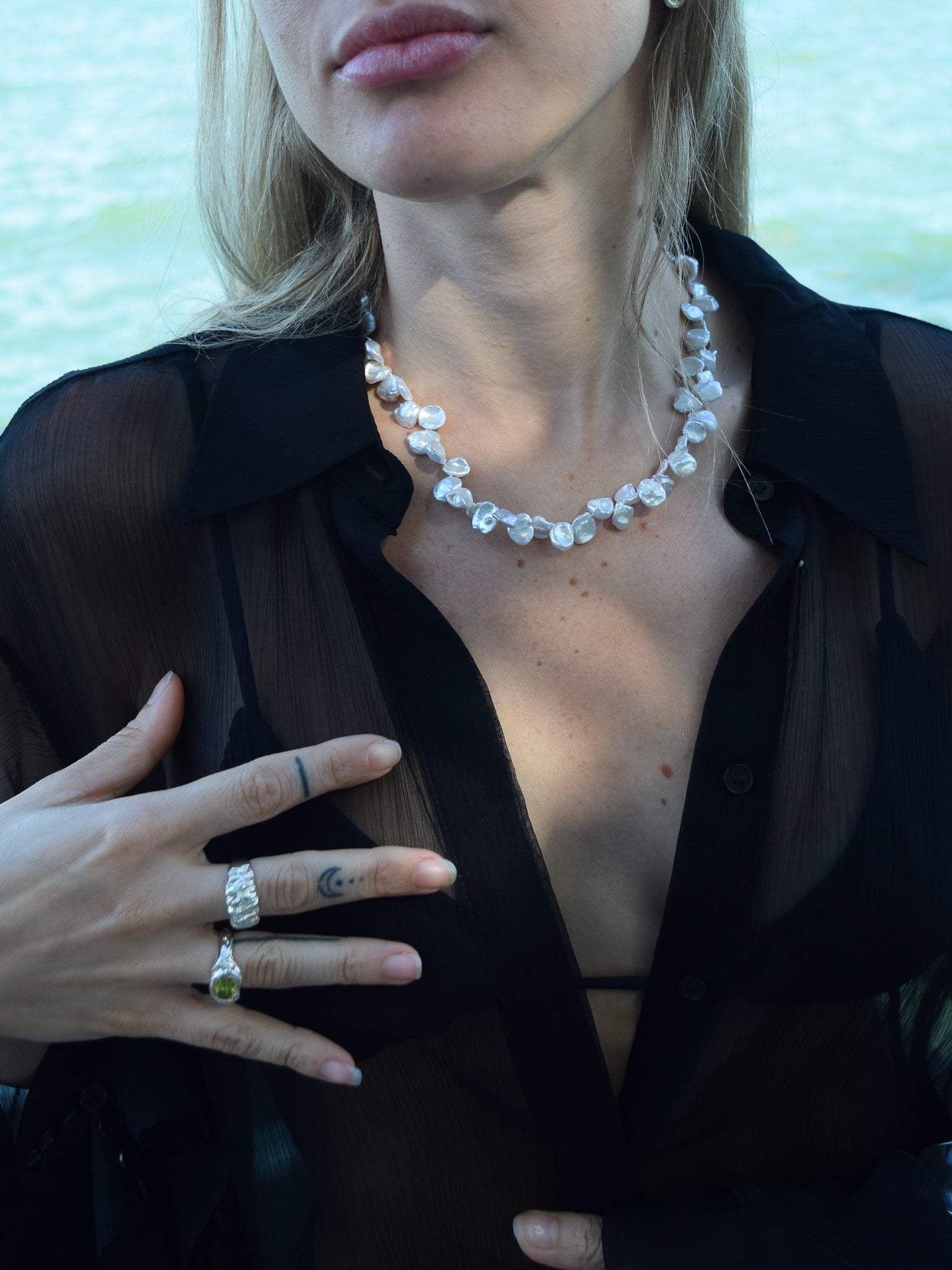 Natural 6mm White Long-Drilled Keshi Pearl Necklace